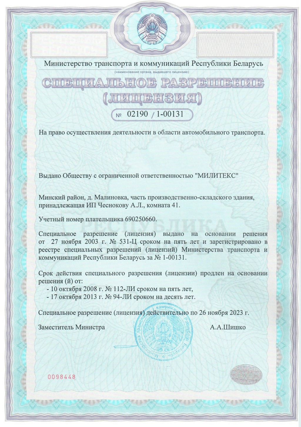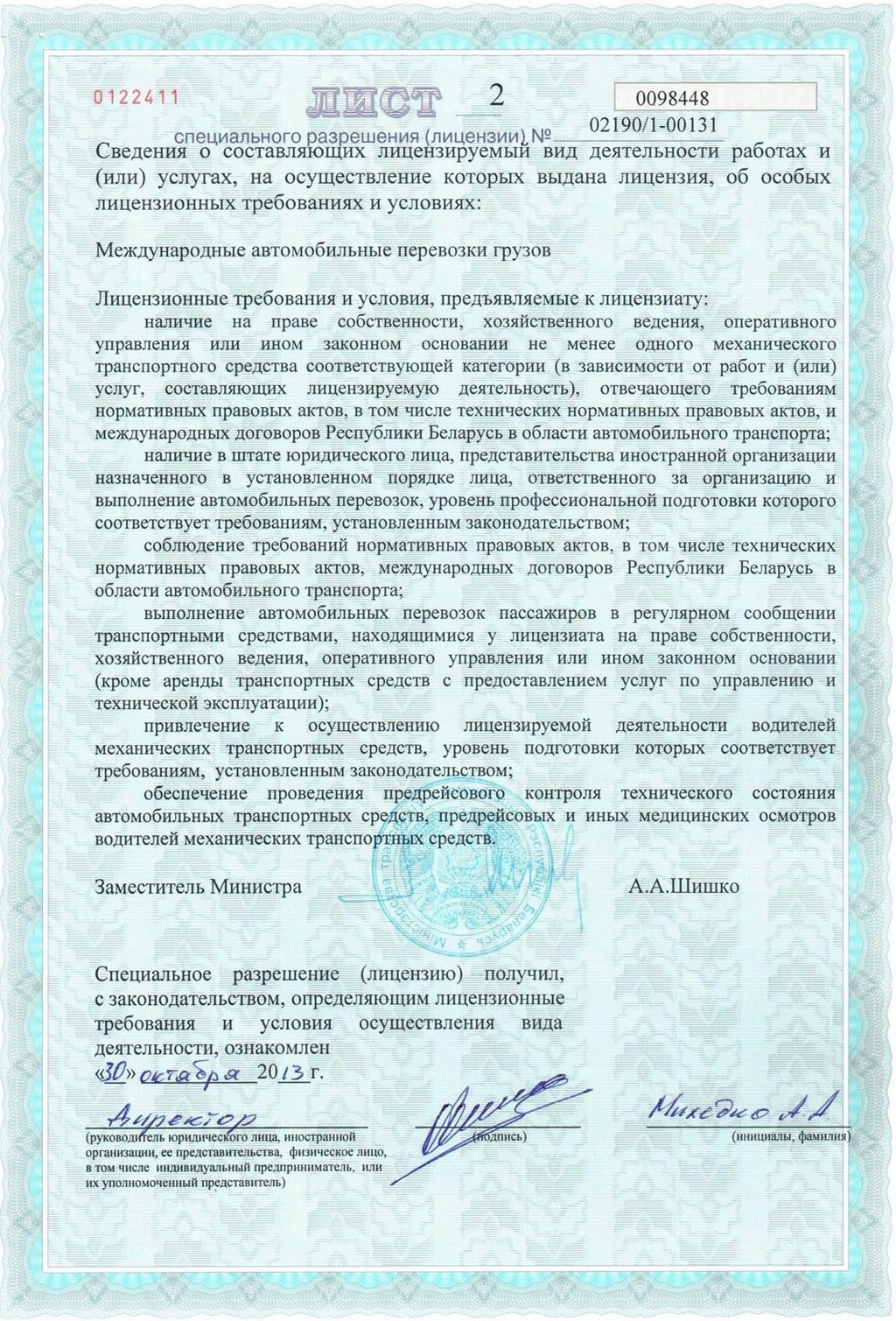 Лицензия (лист 2)
